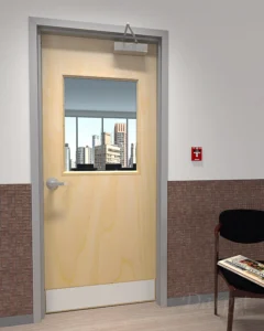 - Steel doors with glass panels are common in commercial settings where durability, security, and fire resistance are priorities. They offer a strong frame that can support large glass inserts while maintaining safety.