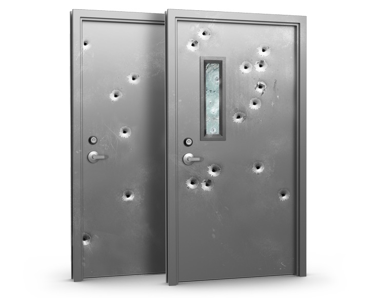 Our bullet-resistant steel doors are tested to meet UL 752 ballistic performance levels, providing protection against common handgun threats. Available features include:
