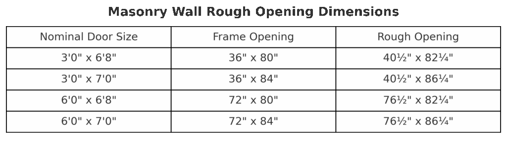 Masonry Wall Rough Opening Dimensions